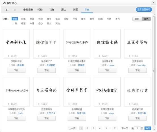 注:普通会员上传一个字体可获取素材中心的1个积分,下载字体扣除1积分,迅雷会员可任意下载。