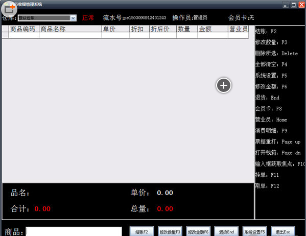 商品销售:商品的销售管理功能,可通过输入商品条码、编号选择商品。