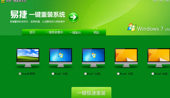 易捷一键重装系统是一款全自动系统重装工具,通过易捷一键重装工具可以快速重装winxp/win7/win8系统,软件通过云高速下载系统镜像之后对电脑系统盘进行系统恢复,同时软件中更包含了资料备份还原,通过次功能能快速将系统中的桌面、收藏夹、桌面文件进行备份以及还原。系统备份还原功能则是将原本的系统进行备份,或者将原本进行备份的系统进行还原。易捷一键重装系统软件是不会装系统或者懒得去操作繁杂步骤的懒汉专门打造的神器。