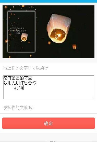 2、生成朋友圈孔明灯治愈文字表白图片