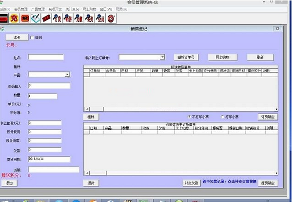 会员管理,分店管理,进销存管理,营业登记,业绩查询等功能。