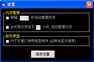 适用操作系统:WindowsXP/2003 说明:普通的内存整理软件在整理内存之后,硬盘都会哗哗哗地响上好一阵,这是由于它们把普通程序从内存中“迁移”到虚拟内存中了。这样做不仅不会提高系统性能,反而会降低系统的速度。Memory Cleaner解决了这个问题!它只是整理其他程序所占用的多余的内存,并不会不分青红皂白地“迁移”其他程序。