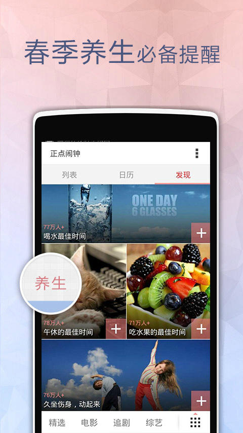 正点闹钟是Android上最强大、最好用的闹钟,是中国人自己的闹钟,完美支持农历,完全符合国人生活习惯,绝非汉化。这也是世界上第一款生活提醒闹钟,在正点的时间做点正事。更有超级灵活的提醒周期,覆盖单次提醒、单双号、隔N天提醒、周提醒、月提醒、季度提醒、年提醒。正点闹钟下载