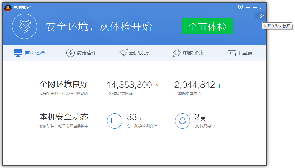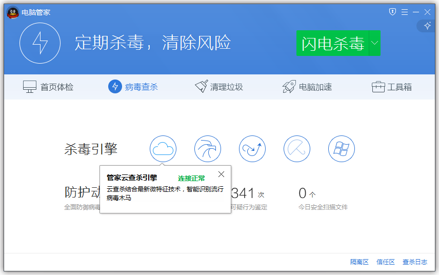 全球最大安全云库、全新升级的杀毒引擎,独有的qq帐号防御体系,全面净化互联网雾霾
