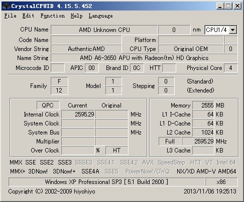 CrystalCPUID是一款功能和WCPUID基本相同的工具,但是CrystalCPUID对处理器支持的范围更广。CrystalCPUID支持几乎所有类型的处理器检测,最特别的是CrystalCPUID具备完整的处理器及系统资讯侦测功能外还可调节K7/K8处理器及Cyrix III / C3处理器倍频。