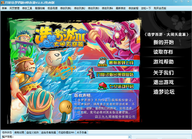 造梦西游4幻米修改器是专门为页游《4399造梦西游4》游戏玩家全新制作的游戏辅助工具,此款辅助能够为玩家提供法宝修改、技能秒杀、普攻秒杀、技能特效等实用功能。玩家通过该辅助能够轻松游戏,该辅助功能强大,绝对是造梦西游4玩家使用辅助的首选,使用该辅助将大大降低玩家的游戏难度,喜欢玩造梦西游4的玩家快来试试这款辅助吧!