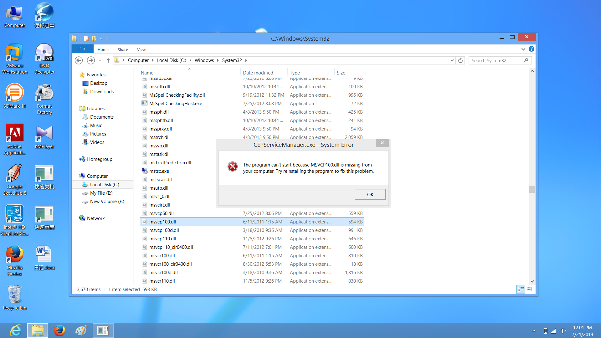 msvcp100.dll可以解决提示“找不到msvcp100.dll”或“msvcp100.dll缺失” 或者“msvcp100.dll错误”问题。msvcp100.dll是存放在Windows系统文件夹中的重要文件,通常情况下是在安装操作系统过程中自动创建的,对于系统正常运行来说至关重要。
