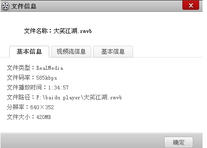 ,弹出以下对话框,可以查看您正在播放的媒体文件的信息: