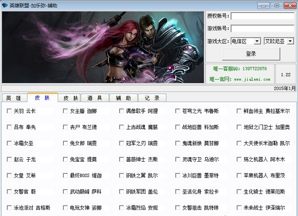 加勒米英雄联盟刷金币/英雄/皮肤/点卷软件辅助是一款多功能的LOL辅助工具,它包含有LOL刷金币辅助,lol刷英雄辅助,lol刷皮肤软件,lol刷点卷辅助等工具。