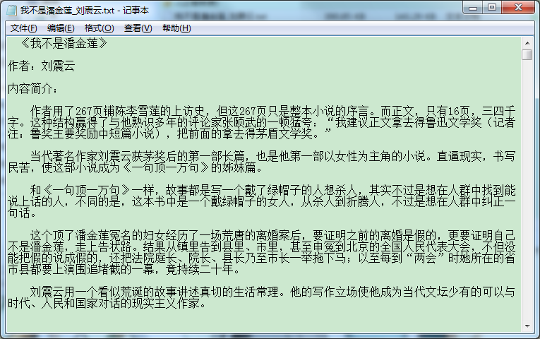 我不是潘金莲TXT打包下载是内地知名作家刘震云的一本小说,讲述一个顶了潘金莲冤名的妇女经历了一场荒唐的离婚案,从而走上告状路。