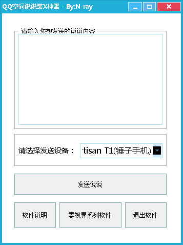 QQ空间说说装X神器,看名字大家都知道这是干什么的吧!空间说说小尾巴,各种装逼的小尾巴你可以任意修改,什么iPhone6/iPhone6 Plus、锤子手机等随便你怎么玩都可以。当然你还可以自定义,发一条装逼说说试试看!