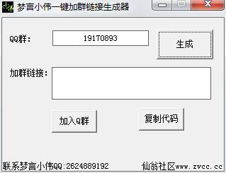 梦言小伟一键加群链接生成器是一款方便加QQ群的软件,这款软件可以帮助你自动生成指定QQ群的加群链接,支持指定群号码生成加群链接功能,只需要输入QQ群号码即可一键获取加群链接,然后也可以把加群链接发送给你的好友,当你的好友点开链接后就能自动申请加群了,非常方便!