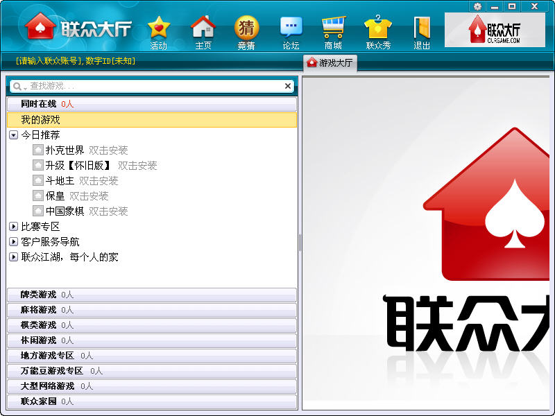 联众世界游戏大厅是联众世界自主开发的一款集棋牌、休闲、对战于一体的游戏客户端, 用户可以通过游戏大厅迅速进入联众游戏世界,与来自世界各地的玩家同竞技,共欢乐.