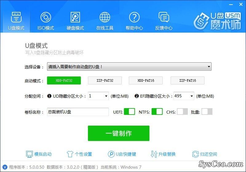 U盘魔术师,简称USM,由系统总裁网站(www.sysceo.com)开发研制,是一款面对移动设备,光盘设备,本机系统的PE系统的制作工具,界面友好、简单易用、功能全面、自定义强,是装机人员必备工具。