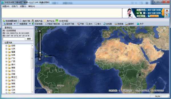 软件提供了全中国卫星地图浏览窗口,在该窗口中,您可以通过滚动鼠标中键滚轮对视图进行缩放;通过按下鼠标中键对视图进行平移。