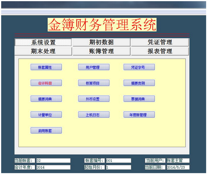 5、多年度账管理:每个账套下可建多个年度账,具体数量视硬盘容量,这样便于数据管理和查询,同时可方便地引入引出。