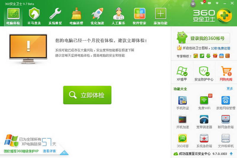 360安全卫士是一款由奇虎网推出的功能强、效果好、受用户欢迎的上网安全软件。360安全卫士拥有查杀木马、清理插件、修复漏洞、电脑体检、保护隐私等多种功能,并独创了“木马防火墙”“360密盘”等功能,依靠抢先侦测和云端鉴别,可全面、智能地拦截各类木马,保护用户的帐号、隐私等重要信息。由于360安全卫士使用极其方便实用,用户口碑极佳,目前在4.2亿中国网民中,首选安装360安全卫士的已超过3.5亿。