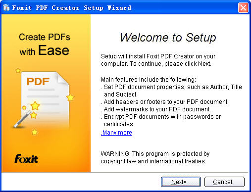 Foxit PDF Creator 是一款虚拟打印机,通过这款虚拟打印机任何支持打印的应用程序可以非常方便、高效地创建生成高品质的PDF文档。和备受大家欢迎的 Foxit Reader 一样,Foxit PDF Creator 也是基于福昕软件同一核心技术研发并设计出来的。此工具具备有强大的搜索功能和高效的PDF显示及处理能力,本身体积小巧,运行快速并且显示精确,可以将当前流行的任何一种文档格式转换成专业标准的PDF文档。