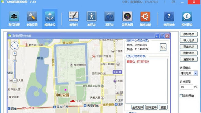 微信营销软件能随时在任何地方模拟真实定位,随心获取想要地区的附近微信用户,以使营销目标更精准,并可随时更换模拟位置,让您的营销实现真正意义上的灵活、精准,大大提高您的微信营销成功率。