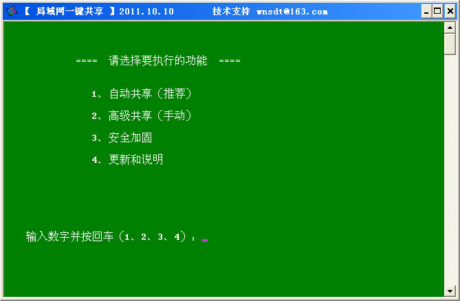 可实现一键开启、关闭局域网共享,安全加固系统(类似360防黑加固)并修复各种打印机无法共享,网上邻居、工作组无法浏览或打开缓慢等问题。程序采用批处理制作,所有功能一键完成,简单高效。使用本软件开启或关闭共享后,必须重启计算机,否则可能无效。