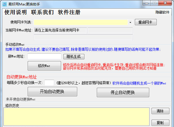 易好用Mac修改助手(易好用Mac地址修改工具)是一个mac地址修改器。在arp攻击越来越普遍的今天,修改网卡mac地址也不失为一个解决办法。使用该软件可能会给您带来损害,因此在使用前,请先备份记录好网卡的原始mac地址,以免给您带来损害。