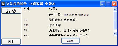 这是我的战争是一款求生类型的游戏,玩家在内战中躲避炮火寻觅各种材料合成自己需要的物品,努力在乱世中生活下去。本工具是玩家为游戏制作的作弊器,功能丰富好用
