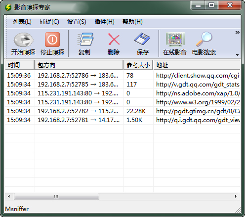 嗅探流经网卡及ADSL猫的网络包(与IE浏览器或realone, realplay, mediaplayer或暴风影音等播放器版本无关),无论其隐藏的多深,都能嗅探得到。