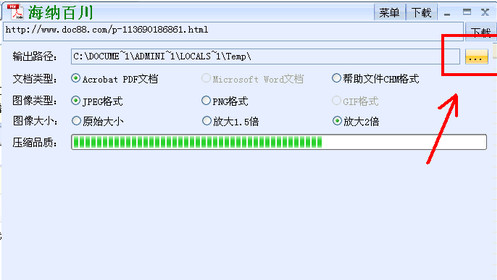 现在返回到道客巴巴文档下载器的主界面将复制到的链接地址粘贴到道客巴巴文档下载器的链接地址框;粘贴好后点击下载,如下图: