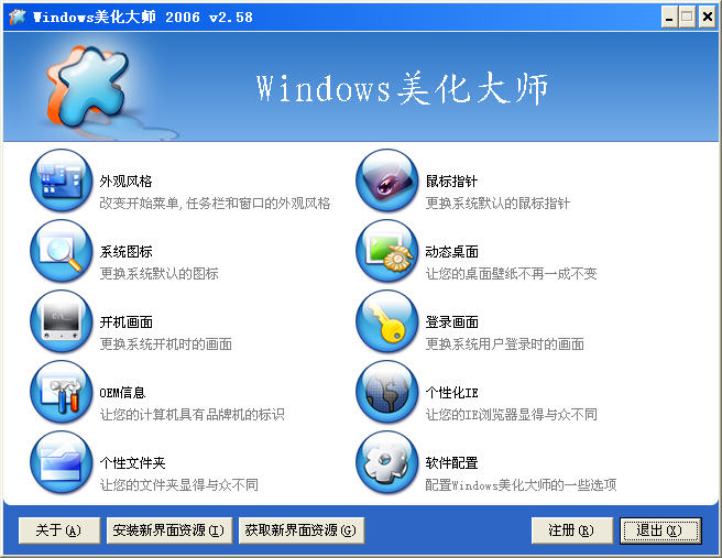 Windows美化大师是一款Windows桌面美化软件,让您的Windows更漂亮、更个性化!