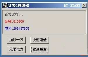 开始游戏之后打开本红色警戒2共和国之辉修改器,然后点击相应功能按钮即可实现你想要的结果!非常方面的!目前可实现价钱十万,无限电力,快速建造,建造免费4个功能!更多的功能正在开发中!