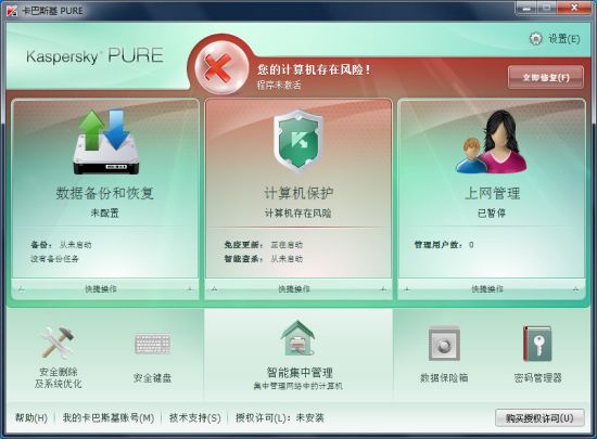 此外,卡巴斯基PURE 3.0的界面非常简洁,便于使用,并可通过一台计算机对多台计算机进行集中安全管理。