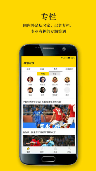 2、专栏—颜强、马德兴、骆明、威尔逊等国内外足坛名家、记者专栏,全方位解读中外足坛事件;