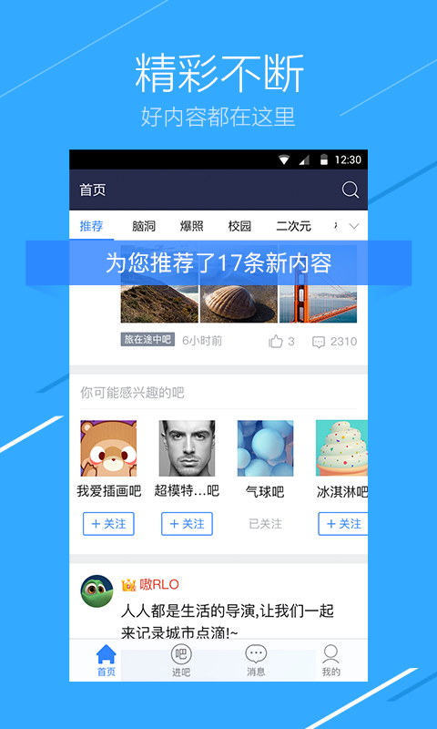 贴吧手机客户端,更方便找到属于你的组织,选择你喜欢的星球,找到精彩兴趣吧,轻松定制专属你的首页内容。