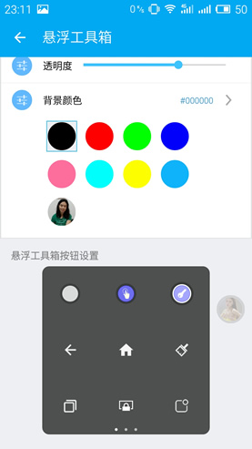 *悬浮球有多种颜色,形状。支持自定义图片背景。