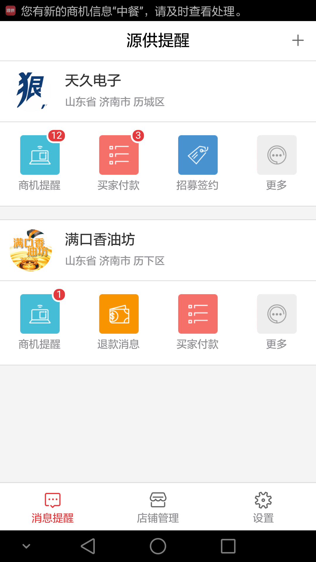 3.支持商机提醒、买家付款提醒、招募签约、招募审核、活动审核、退款消息、结算帐户审核、买家下单、产品下架等多种消息提醒