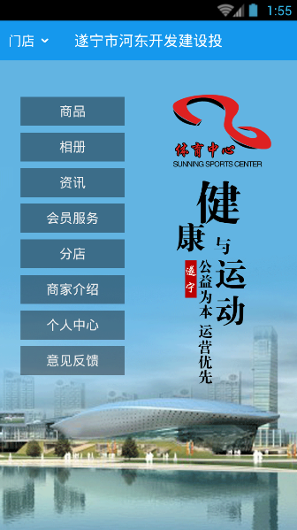 优惠活动:随时随地查看最新优惠活动与资讯;商品展示:遂宁新体育中心,具备多重功能性,既能满足承办省级综合性运动会、全国性单项比赛及全民健身的功能需要;会员服务:随时获取最新会员特权,享受专属福利;一键分享:好产品、好服务当然要和好伙伴一起分享;门店导航:一键导航,帮你轻松到店。即刻下载遂宁新体育中心,强健的体魄!