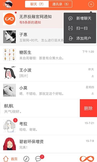 2、添加好友的搜索,还尝试增加对创客空间、投资人、热门群聊的定向搜索;