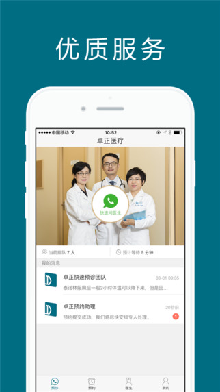 2、专业高效的快速预诊:通过在线发送图文、语音描述您或家人的疾病状况,卓正专业的医护团队将会快速反应,为您提供专业的医疗咨询建议,向虚假的医疗信息say no,为您及家人的健康保驾护航。