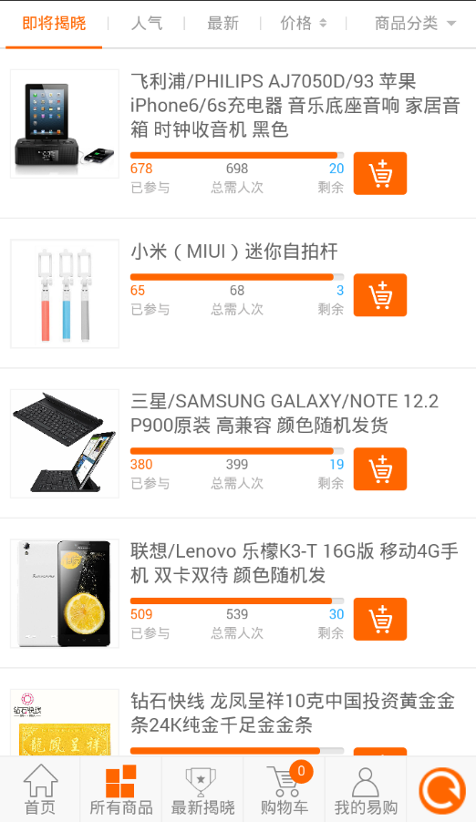 【有趣新型购物方式】么么易购是一种新型的网购模式,只需一元就有可能买到一件商品。么么易购网把一件商品平分成若干“等份”出售,每份一元,当所有“等份”售出后计算出一名幸运在,该幸运者即可获得此商品