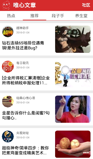 1、唯心文章,聚合各大“微信公众号文章”,涵盖:热点、新闻、段子手、八卦精、财经迷、汽车迷、科技咖、潮人帮、 辣妈帮、点赞党、旅行家、美食家、体育迷;