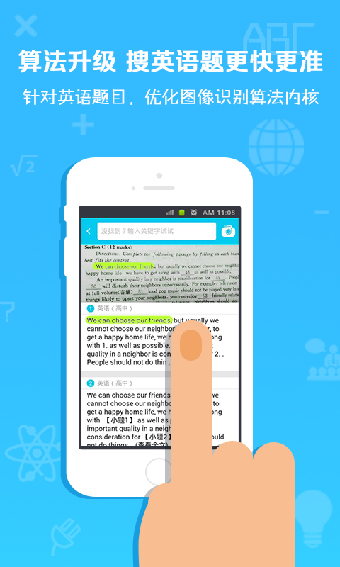 扫作业找答案软件的题库由国内非常权威的菁优网专门授权,覆盖小、初、高各年级,数千名名师每日更新,解题思路准确详细。是学生完成作业、提高学习成绩必备利器。