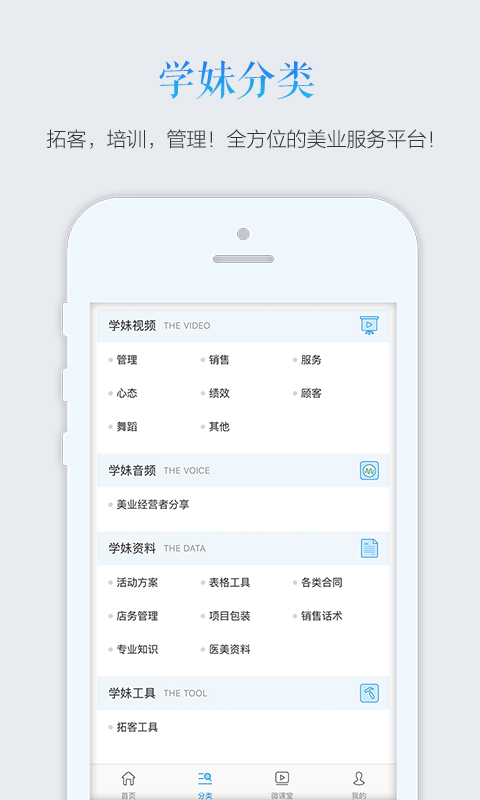 学妹教育:是培训行业020,是 人人乐用的学习工具。无论是个人还是企业,在学妹的平台上,都可以随意选择学习课程和老师,结合自身学习习惯,选择视频观看、直播互动、疑难解答、线下学习等多种学习方式。