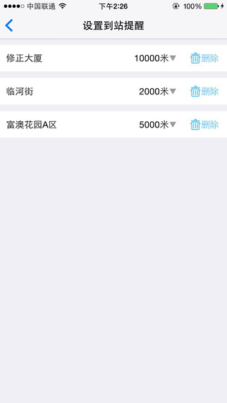 3、用户打开手机APP,系统自动定位用户位置,根据位置获取最近的5个站点,方便用户选择,用户可以根据站点和班车到达站点的距离来设置提醒,这样就可以非常好的把握班车到站时间,合理支配自己的时间,从此再也不用因为等班车而烦恼了。