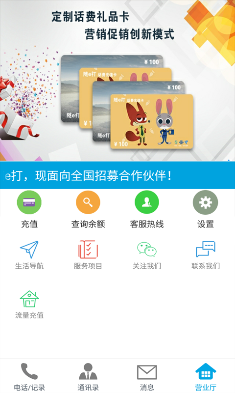 “随e打”是一款帮助企业增强用户粘性、提升业绩的互联网通讯APP,,通过技术手段,实现和常规通话相同的效果,但费用只有常规通话的1/10。广泛应用于企业用户管理、活动促销、广告投放等领域。