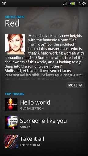 TrackID是一款类似于SoundHound的音乐识别软件,由索尼爱立信公司开发,它可以能通过从电视或者任何外部扬声器录制音乐,然后就会收到艺术家和曲目的相关信息。有了它,你碰到喜欢的音乐而不知道名字的话,就可以掏出手机用这款软件识别出来就行了。而“喜欢”功能,允许你将你正在听的音乐将通过facebook张贴在您的网页上,你所有的朋友看到,当然他们也能听到。