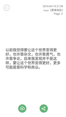 你是否会喜欢躺着读书,这么惬意的时候拿起笔来实在不方便;你是否有过曾经的笔记找不到的苦恼,甚至曾经的笔记丢掉的苦恼?现在这些问题都可以解决啦!读书笔记按书目记录笔记,按时间给笔记排序,再也不用担心找不到笔记啦。同时支持将笔记分享到朋友圈,在分享了情怀的同时还展示了自己喜欢读书的好习惯,是不是一举多得。