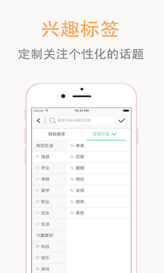 应我校园是一款专为大学生打造的社交软件,用户可以在这里根据自己的爱好来选择适合自己的标签,加入感兴趣的组织,找到志趣相投的小伙伴,喜欢的朋友赶快来下载吧!