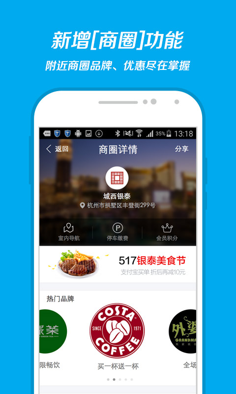3、新增“商圈”功能,附近商圈品牌、优惠尽在掌握;