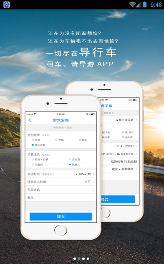 导航车是一款专业的请导游、租车类应用。还在为车辆租不出去而懊恼? 使用导行车公平竞争,再也没有中间商挣差价了,中巴、大巴、商务车、越野车、轿车、房车应有尽有!还在为没有团带而烦恼?地接导游、全陪、领队、景区讲解任你选,走你想走的路,带你想带的团,给你想不到的方便!