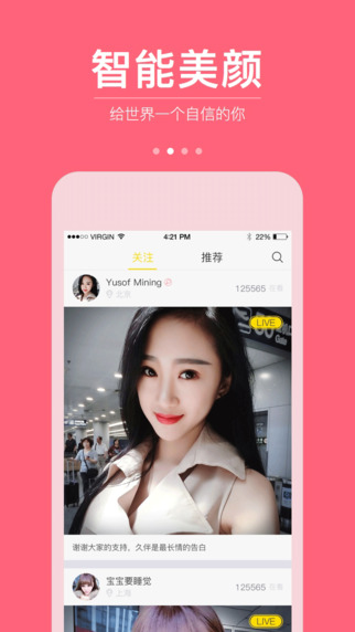 小猪直播,最新最潮爆的手机直播平台,上面有形形色色,多才多艺的人同时直播他们的生活点滴,每个人都有自己的独特亮点,直播让我们在这个时代发出属于自己的光芒,用光芒吸引懂得欣赏自己的人。在这里,你可以找到超高颜值的萌妹子,小鲜肉,怪大叔,足不出户遇到有趣的人,体验与众不同,丰富多彩的人生。